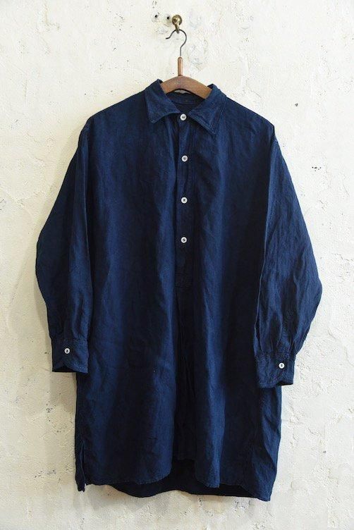 【1940's イタリア製 スリーピングリネンロングシャツ 天然インディゴ染め】