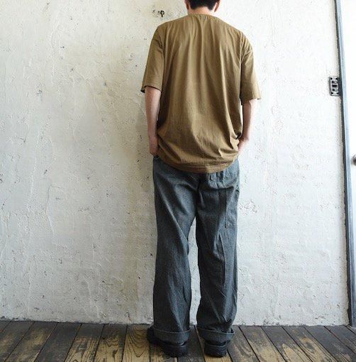生地はコットンです。スイスワーク特有のシャンブレー生地のような質感で履き込めば履き込む程良い雰囲気に変化していきます。