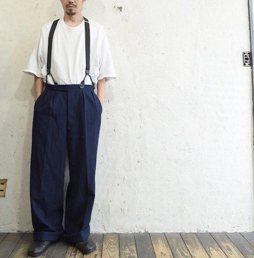 ベルトループがない代わりにサスペンダー用のボタンが付いています。