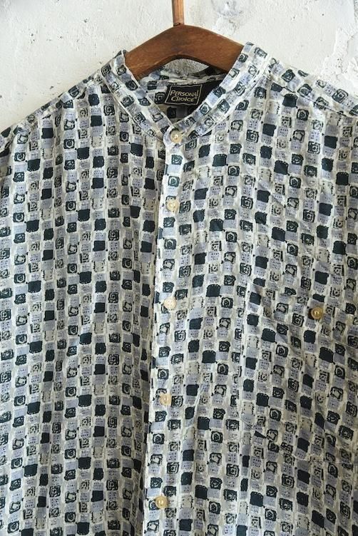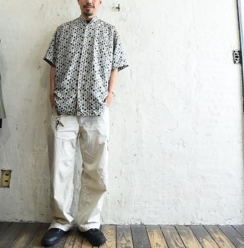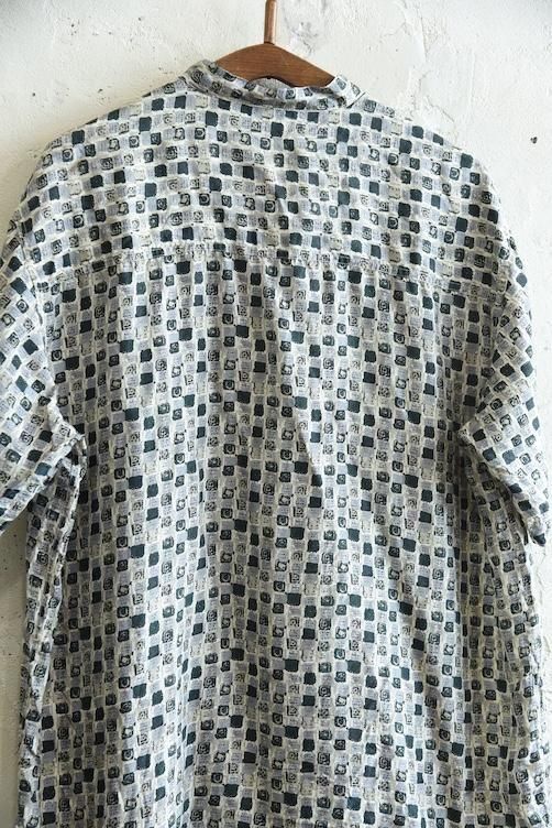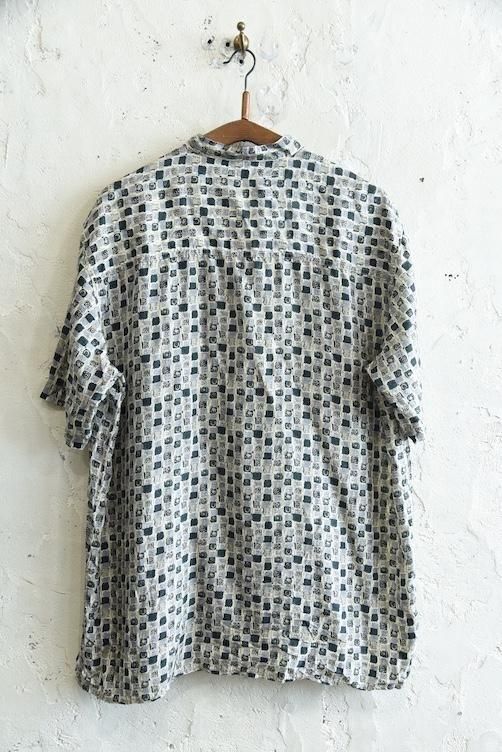 【1990's 総柄 ノーカラー シルクシャツ ショートスリーブ】