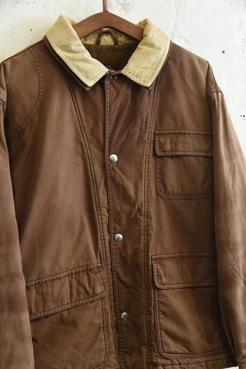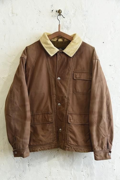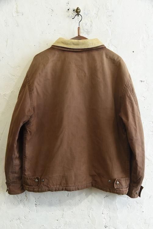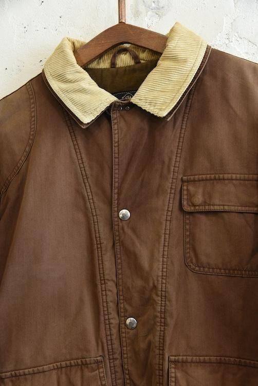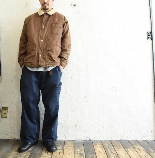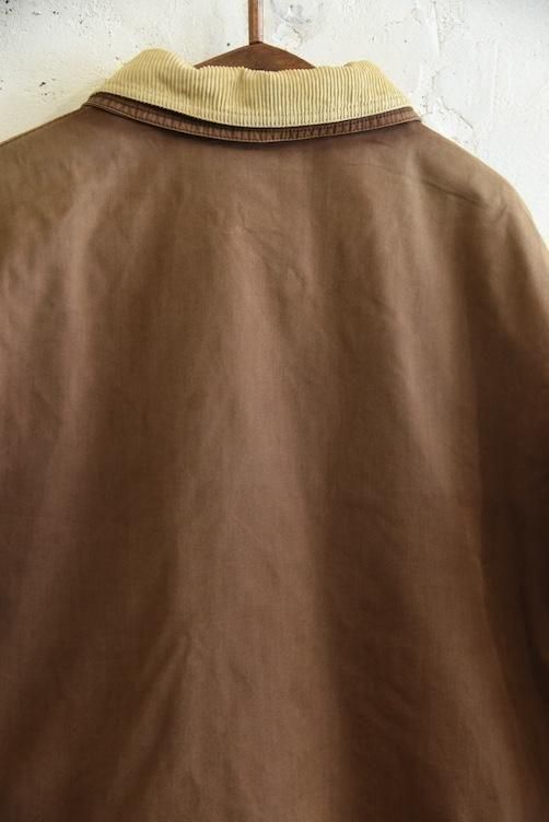 生地はコットンで、全体的にブラウンの色落ちが施されており、ヴィンテージのような風合いを楽しめます。フロントはスナップボタン仕様で軽快に開閉可能。