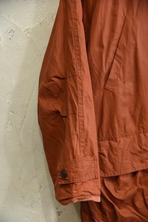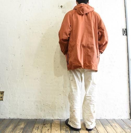 落ち着いたレンガオレンジが印象的で、アウトドアウェアらしい実用性と、ヨーロッパ特有の無骨ながらも洗練されたデザインが見事に融合した一着です。