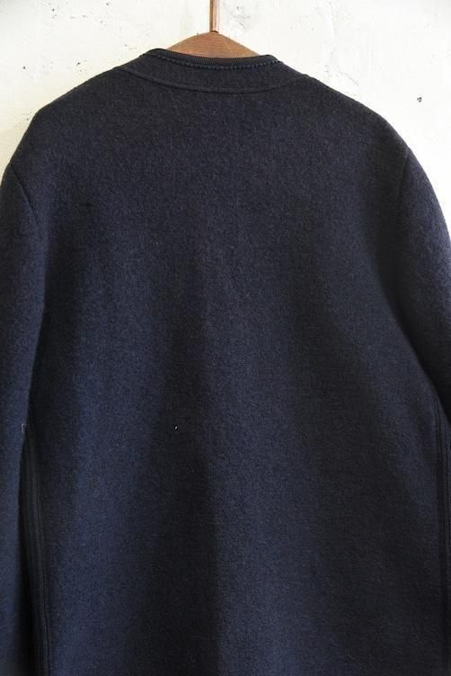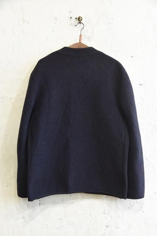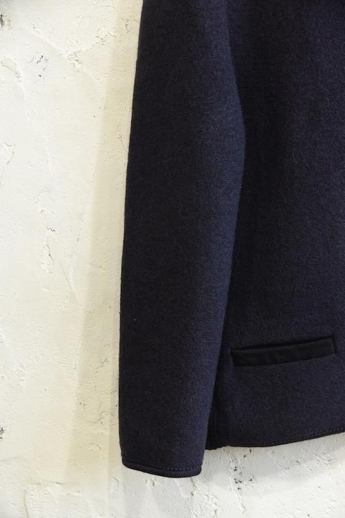 落ち着いたネイビーカラーに、上質なボイルドウールのふっくらとした質感が映える、温かみと品格を兼ね備えた一着です。