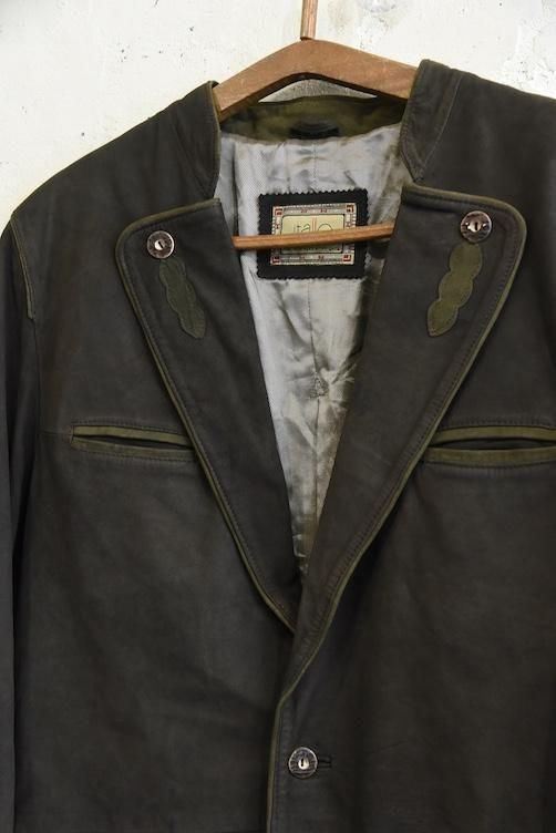 チロリアンジャケットといえば、ウールやリネンなどが定番。レザー素材で仕立てられたタイプは市場でも非常に珍しく、周囲と差がつく一着になること間違いなし。