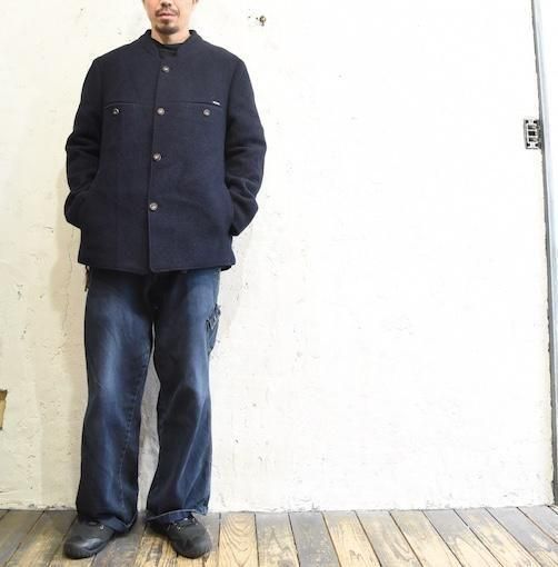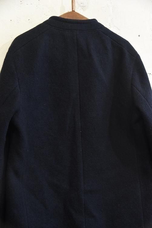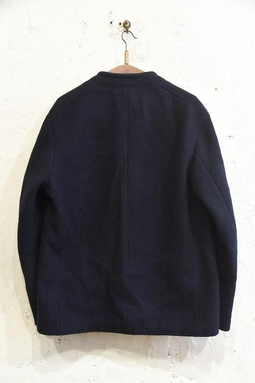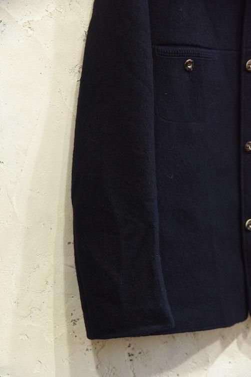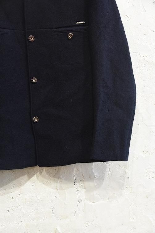 落ち着いたネイビーカラーに、上質なボイルドウールのふっくらとした質感が映える、温かみと品格を兼ね備えた一着です。