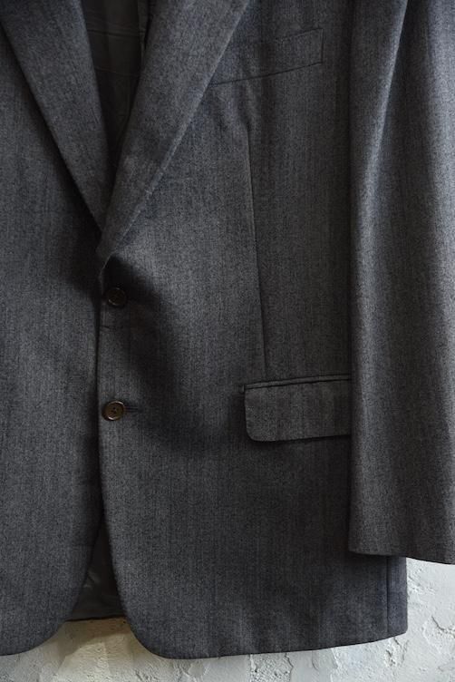 滑らかで軽やかな質感ながら、しっかりとしたハリとドレープを兼ね備えています。英国仕立てらしい構築的なシルエットと、イタリア仕立ての柔らかさが絶妙なバランスで共存。