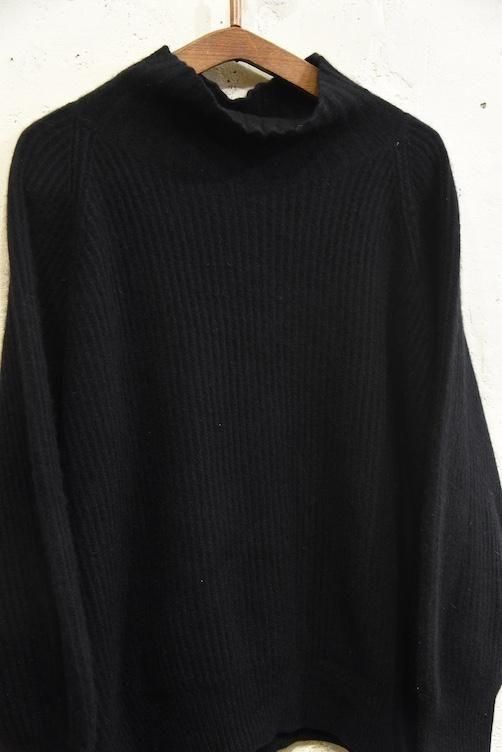 【イタリア製 ハイネック カシミアセーター 後染めブラック】
